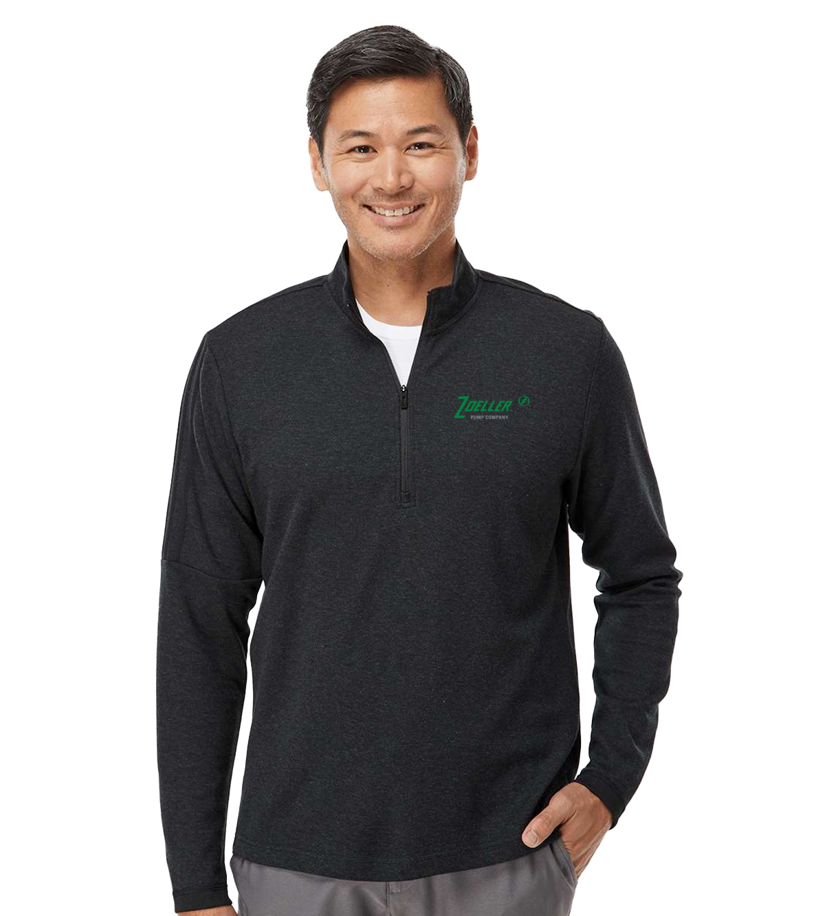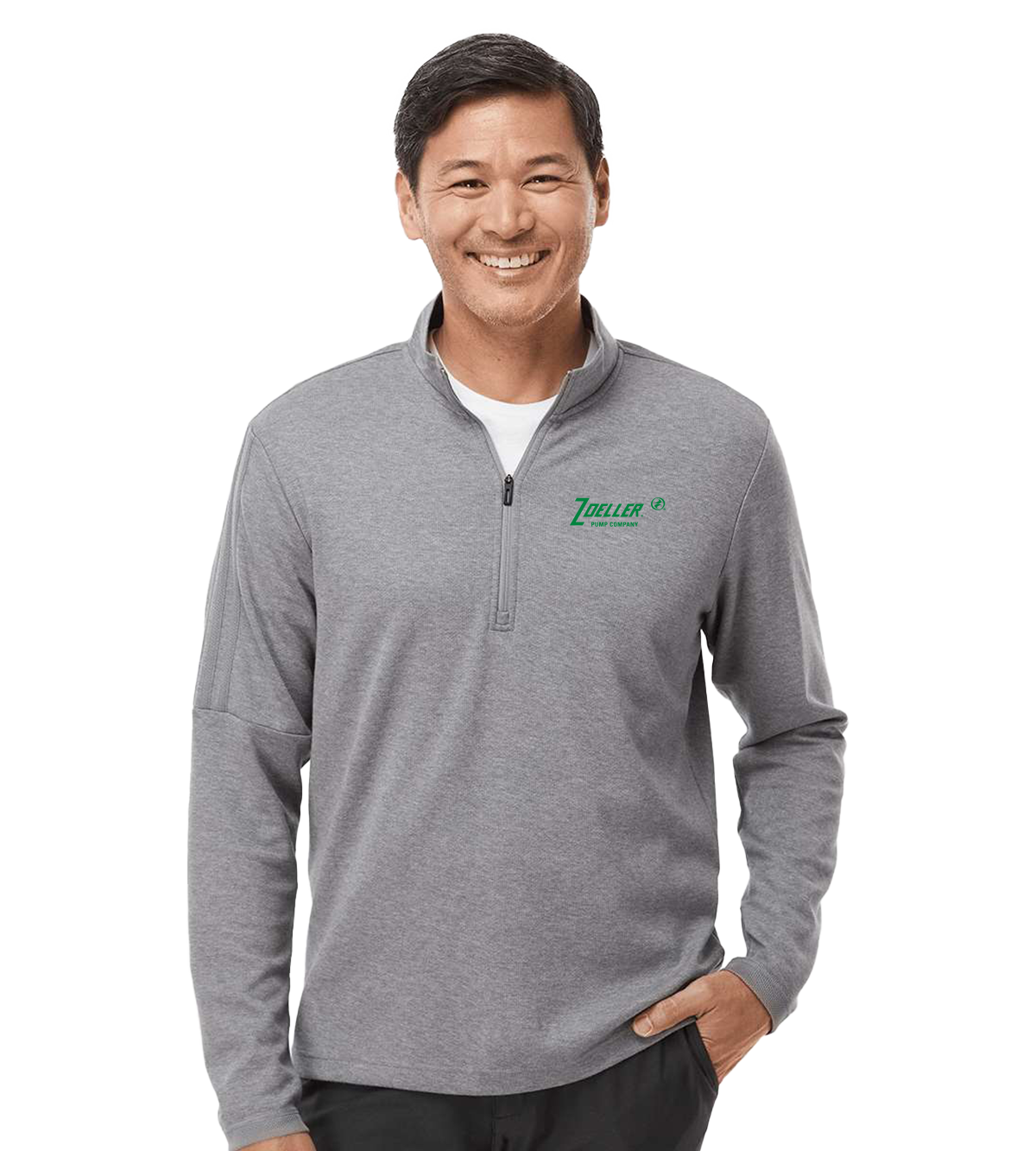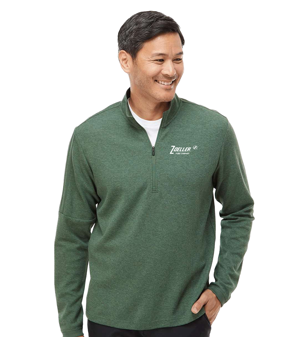 6.5 oz./yd² (US), 10.85 oz/L yd (CA), 53/47 cotton/recycled polyester, Moisture-management properties, Stand-up collar, Tonal 3-stripes on right sleeve, Contrast logo on back neck,
