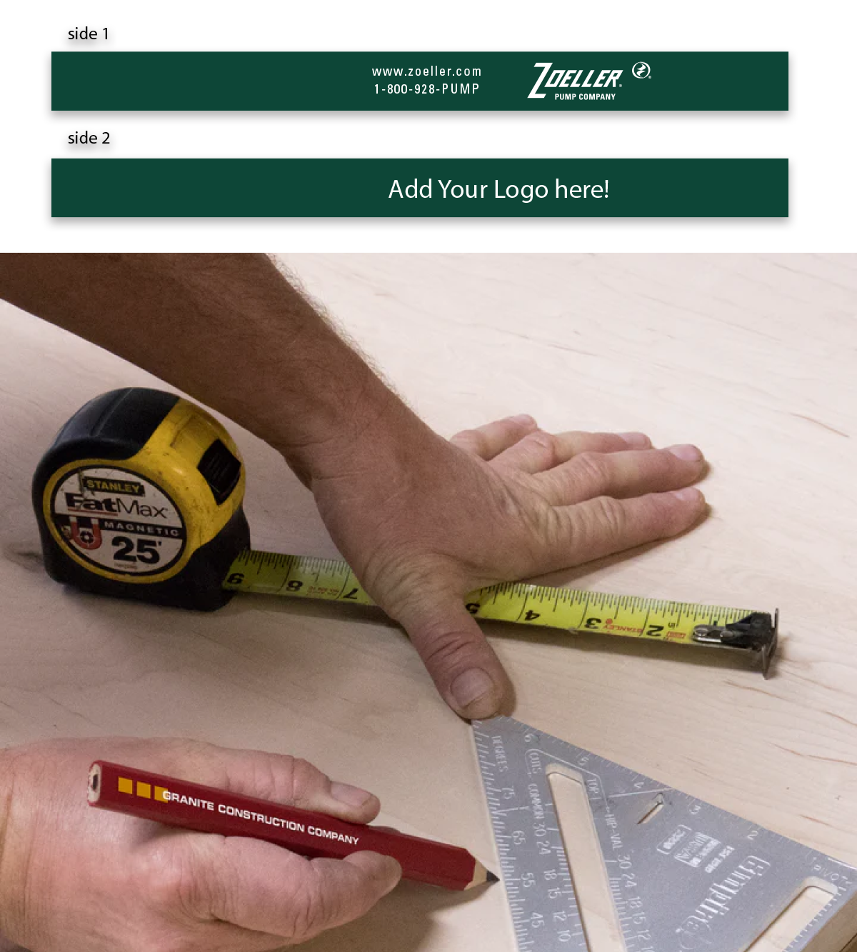 Poplar wood, #2 graphite HB (medium hard), green imprinted white Zoeller Pump Company logo.