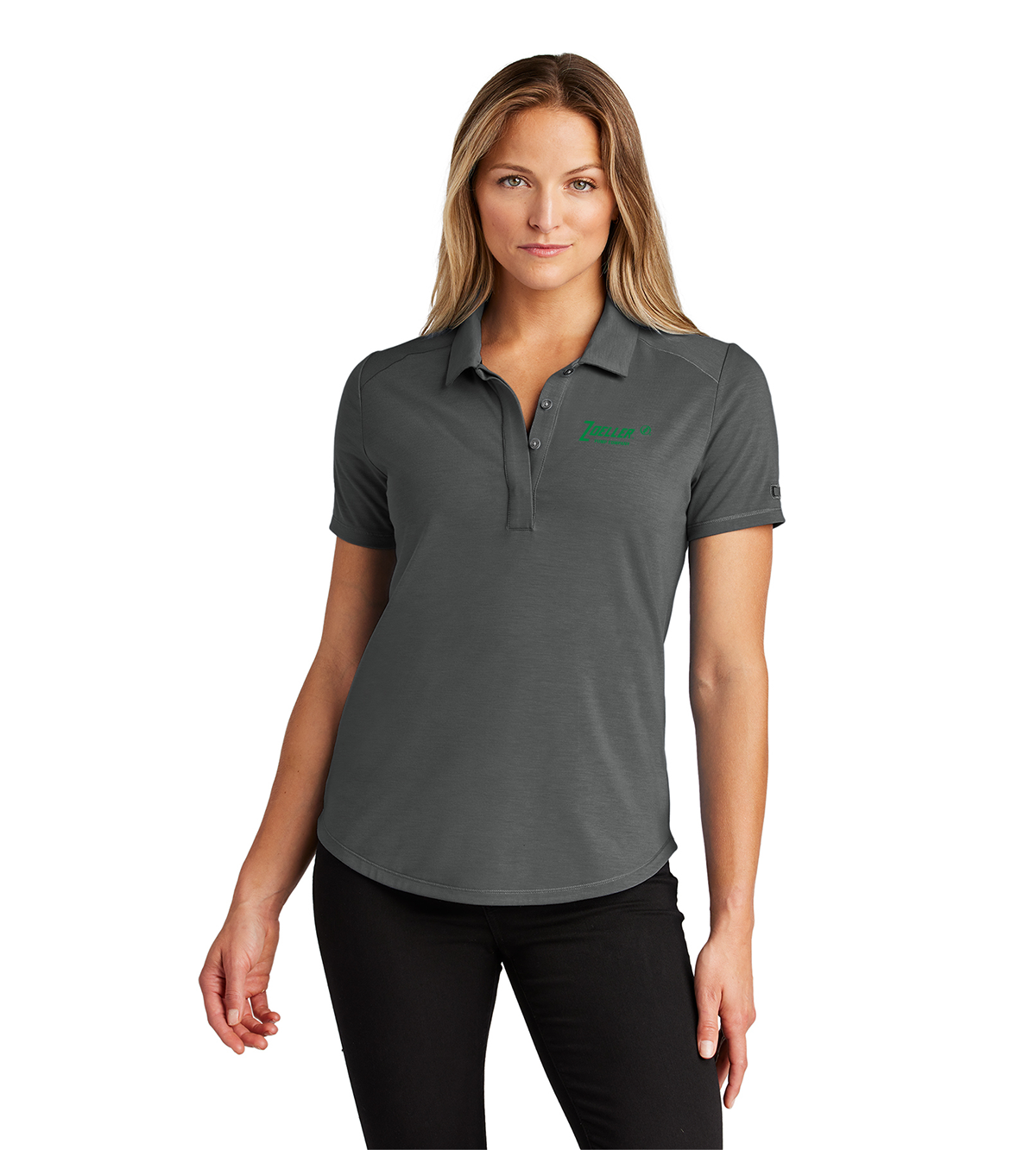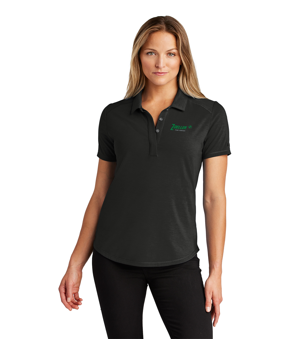 6.5-ounce, 84/10/6 poly/rayon/spandex with stay-cool wicking technology, UPF rating of 30, OGIO heat transfer label for tag-free comfort, Self-fabric collar, 4-button covered placket, Sandwich tone buttons, Forward shoulders, Merrow stitching detail at shoulders, Embroidered dyed-to-match O logo icon on left sleeve, Curved hem with slight back drop.